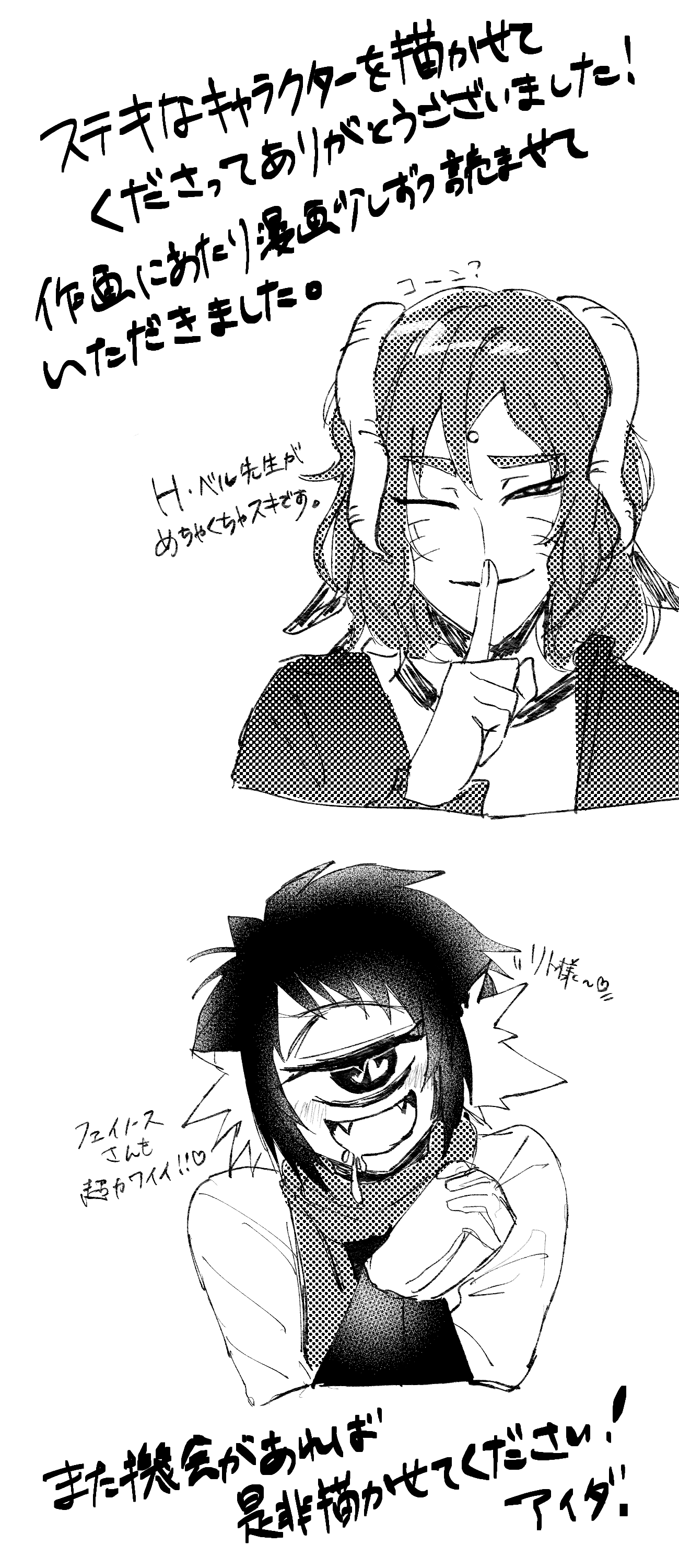 おまけでイラスト付き(ベル先生とフェイ)メッセージを添付してくれてたり、