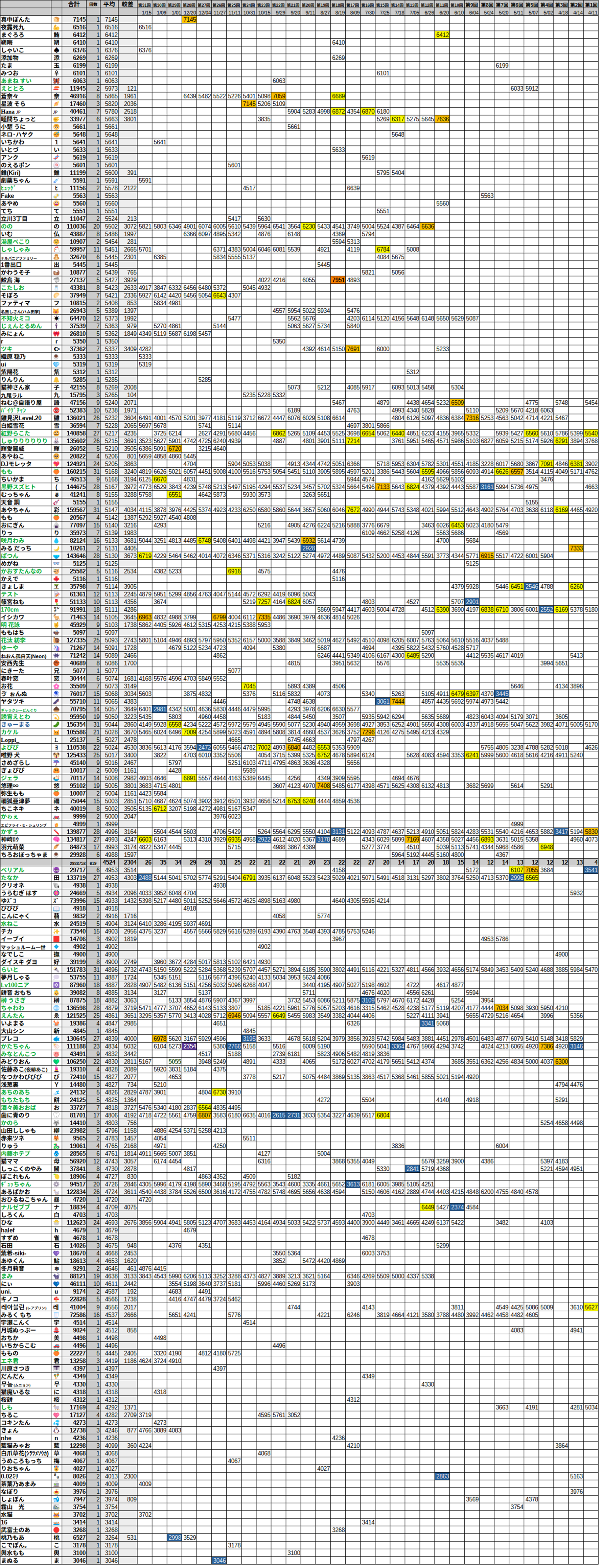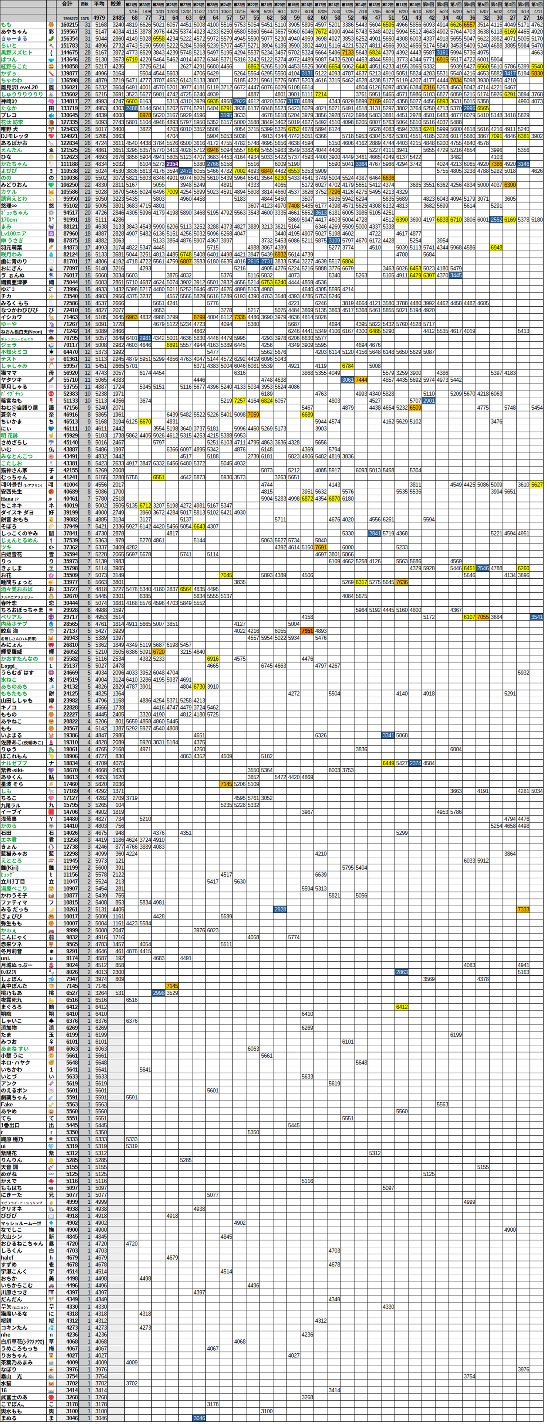 57位:あやちゃん 4115