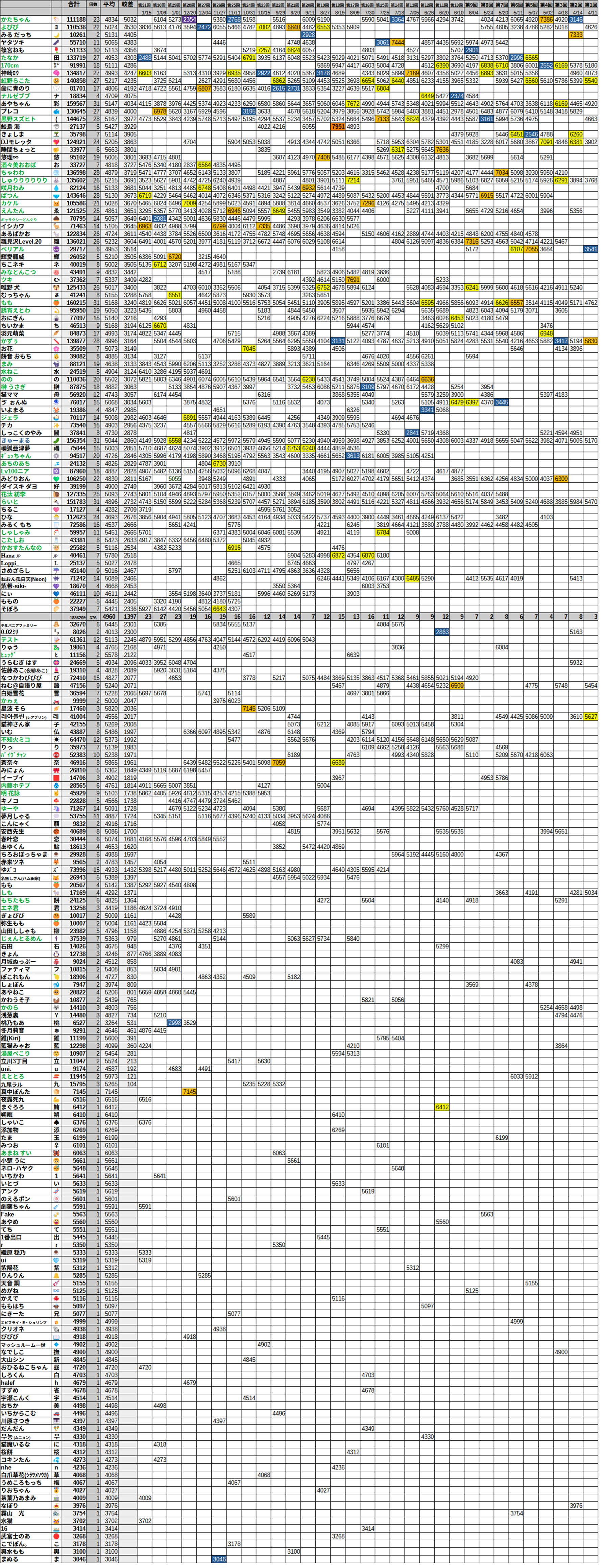 最下位は、タナカチャンでした。